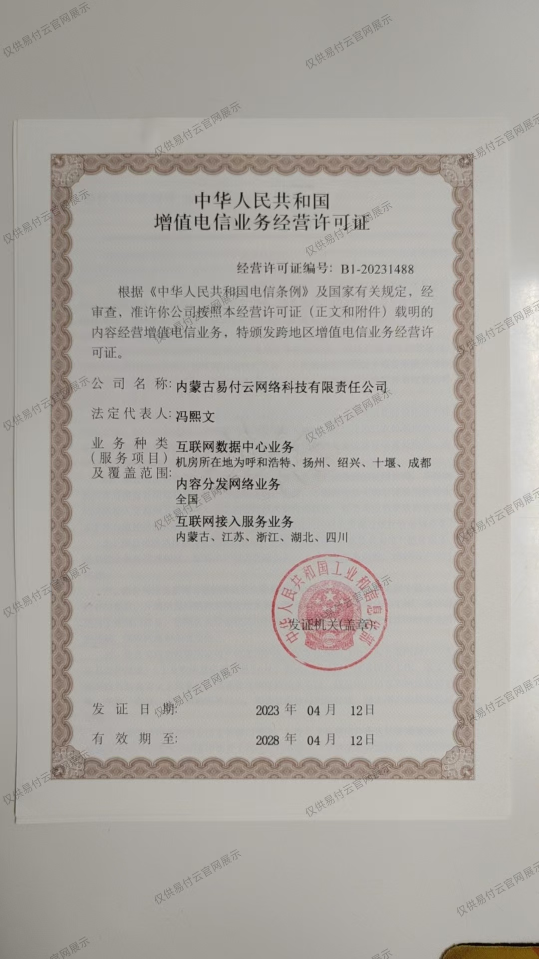内蒙古易付云网络科技有限责任公司成立于2023年,是国内领先的互联网业务平台服务提供商。内蒙古易付云网络科技有限责任公司专注为用户提供低价高性能云计算产品,致力于云计算应用的易用性开发,并引导云计算在国内普及。目前所研发以及运营云服务基础设施服务平台(IaaS),面向全球客户提供基于云计算的IT解决方案与客户服务,拥有丰富的国内BGP、双线高防、香港等优质的IDC资源。内蒙古易付云网络科技有限责任公司一直秉承"以人为本、客户为尊、永续创新"的价值观,坚持"以微笑收获友善, 以尊重收获理解,以责任收获支持,以谦卑收获成长"的行为观向客户提供全面优质的互联网应用服务。易付云立足于互联网领域,凭借丰富的互联网行业经验,一站式的方案与流程,精准把握用户需求核心,并提供域名注册、商标注册、短信服务、网站开发、建站市场等高品质企业服务,以及云服务器、云主机、云存储、云数据库、云监控、裸金属物理机、服务器托管等基础云服务。