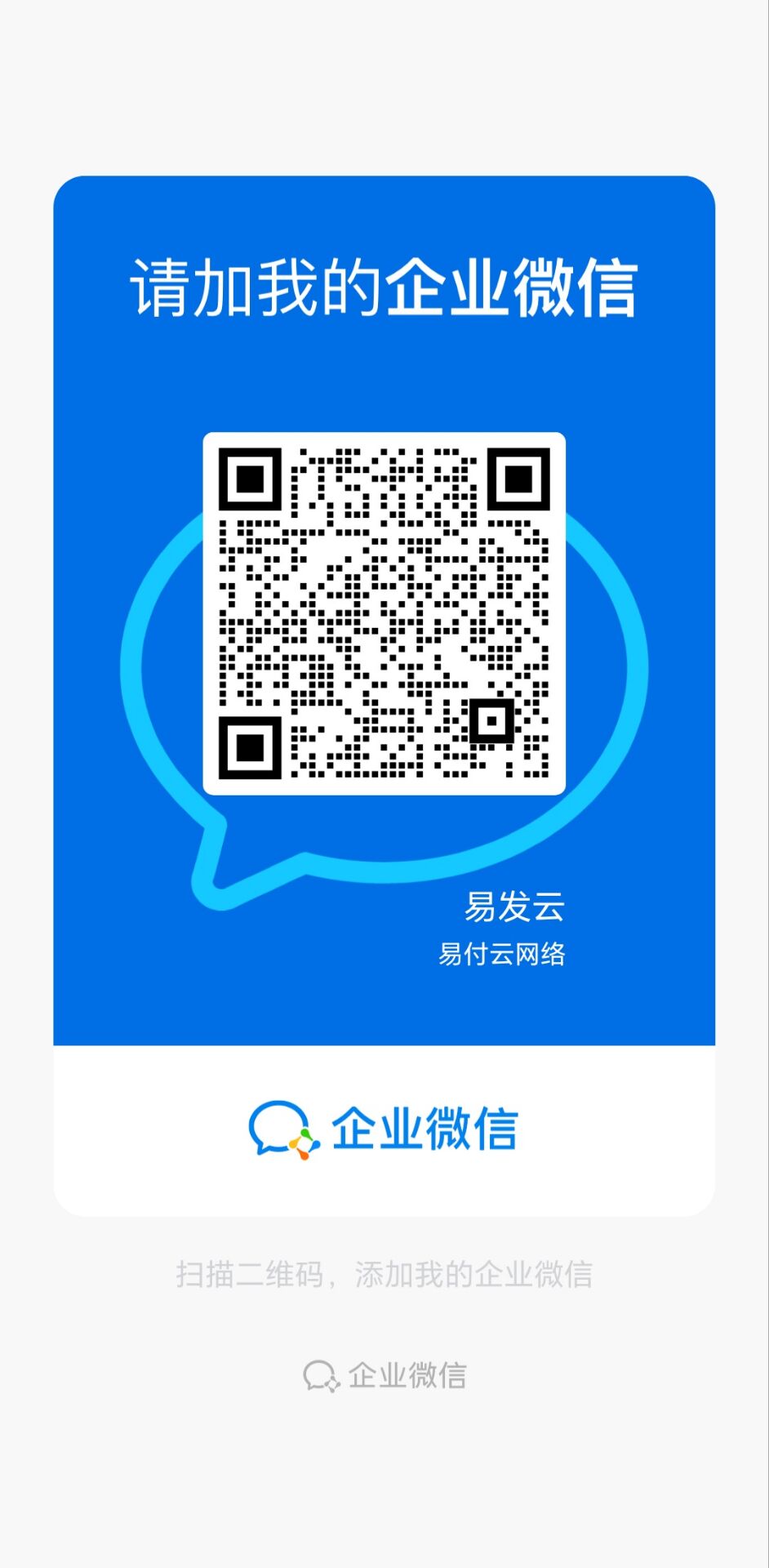 长按或截图保存,扫描关注易付云计算服务微信公众号